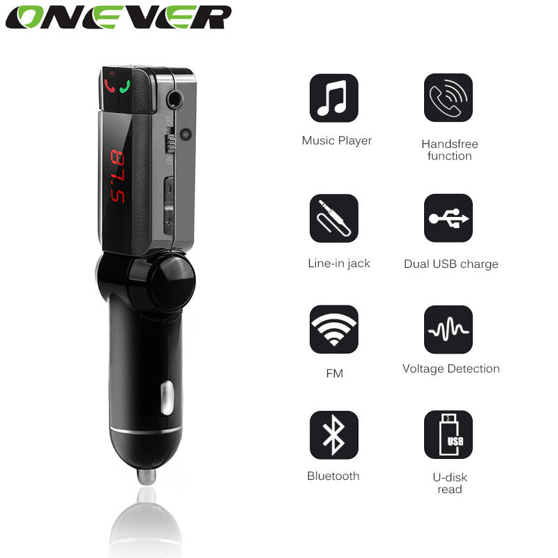 DC 12-24V A2DP Wireless Bluetooth Car Kit Handsfree FM Transmitter Car MP3 Player Support U Disk Dual USB Car Charger for Phone