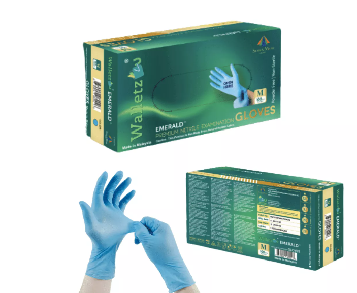 Emerald Nitrile examination gloves 100 gloves per box and 10 boxes in a master case.