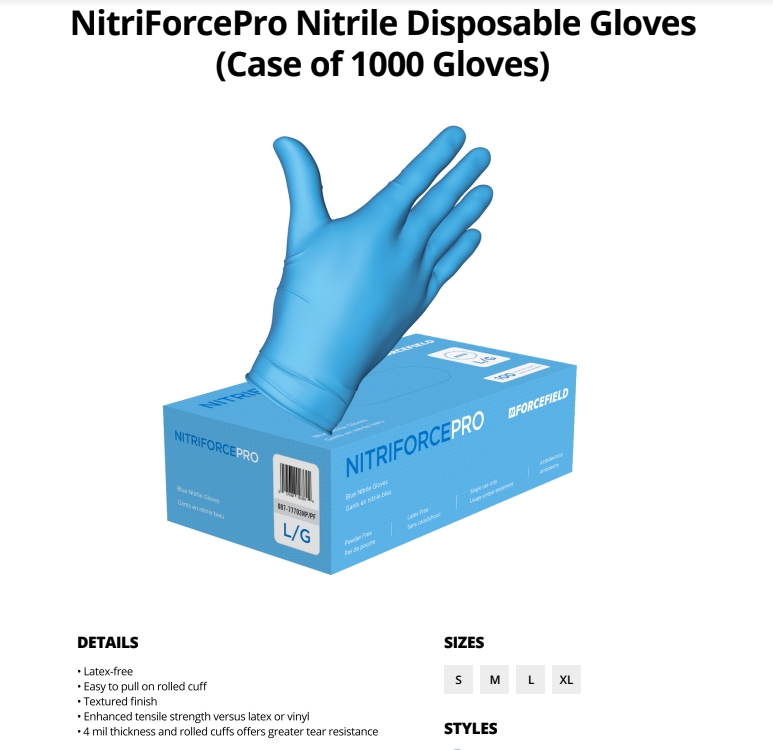 Nitrile Gloves powder free 100/box 4 mill nonmedical sold by case CURBSIDE PICK UP AVAILABLE