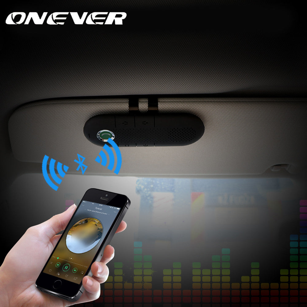 Onever Wireless Bluetooth Car Kit Speakerphone Handsfree Sunvisor In-Car Speaker music Player for SmartPhone with Car Charger