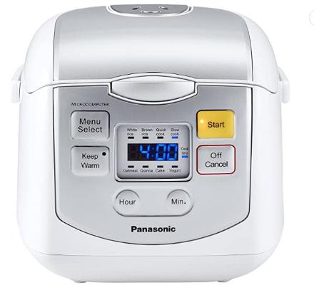 • This sleek, versatile SRZCO75W Multi-Function Rice Cooker makes perfect rice easily and is fully automatic. Its convenient 4-cup uncooked rice capacity (8 cups cooked) is more than perfect for singles, couples and small gatherings. Panasonic's smart microcomputer heating control continually senses and regulates heat for different rice types and styles. An ultra non-stick, fluorine inner pan ensures that every grain of rice is evenly cooked and delicious. All you have to do is put in rice and water, choose from eight pre-programmed options for rice, soup, hot cereal or other food and push a button. When done, a convenient keep warm function maintains the ideal freshness and serving temperature for up to 12 hours. It doesn't get any simpler or more convenient than this. Cleanup is quick and easy too. Accessories include a rice measuring cup and rice scoop.